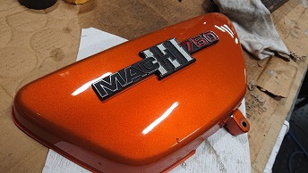 続いて、副長に納車するSS750の外装をバフ掛けし甦らせておきます。