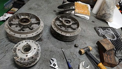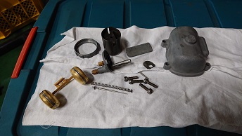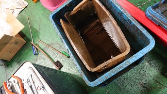 色々準備する前に、W用のキャブの清掃をお願いされたので、そちらも分解に「魔法の液」に漬けこんでおきます!
