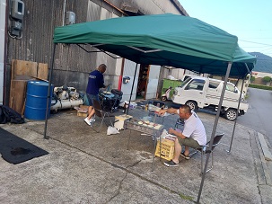 今日の夕方より、西岡君がもらってきた天然うなぎを焼くというので準備します!!