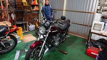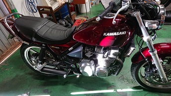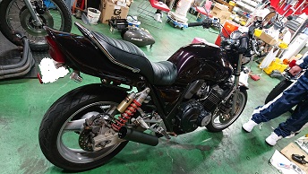 こちらのゼファー400は、オイル交換・エレメント交換・リアショックの取替!