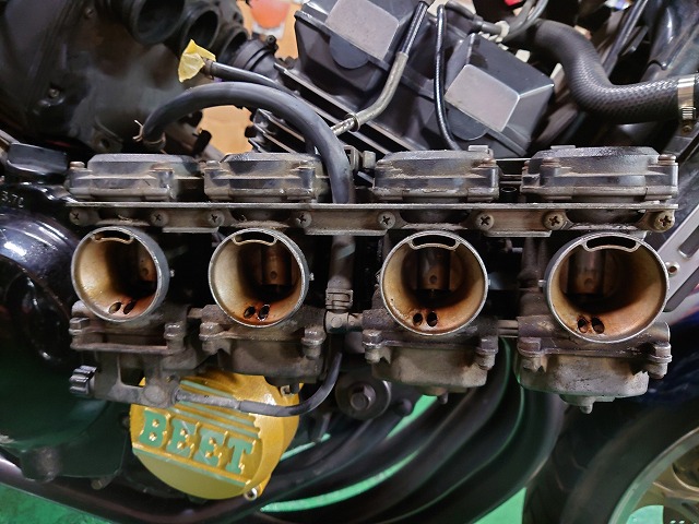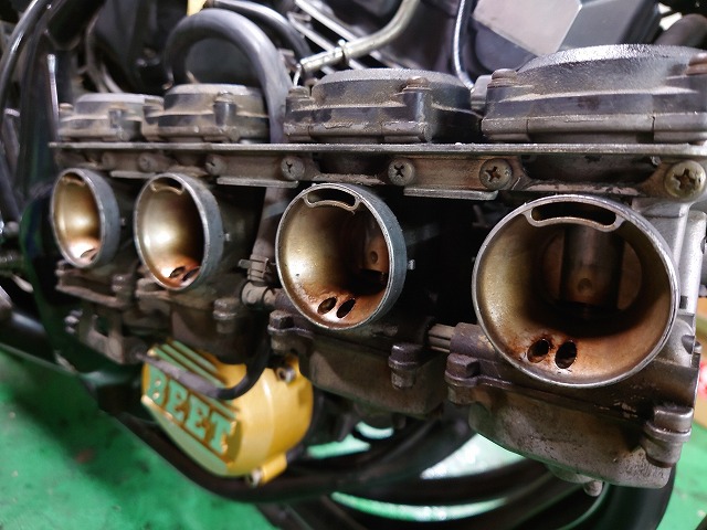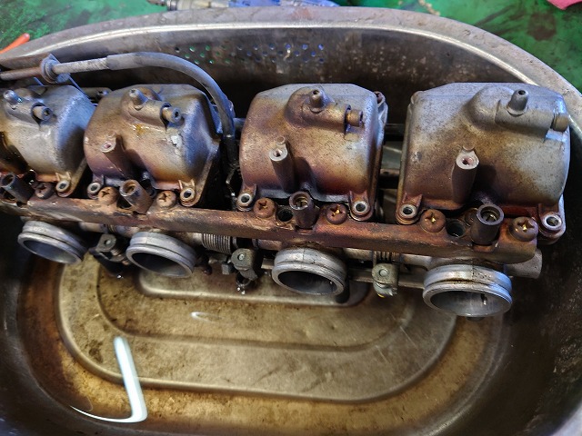 ZRX400のアクセルワイヤー交換しようとキャブを取り外しましたが、ちょっと汚れすぎているので、ついでに綺麗に仕上げておくことにします。