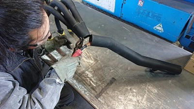 散髪を済ませ、ピカルに頼まれていたマフラーの補修に!