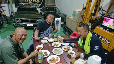 予定が変わったので、急遽身近な人だけで楽しもうとガレージで!