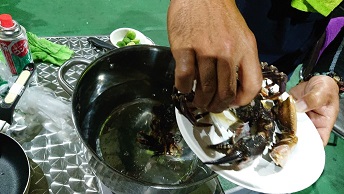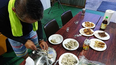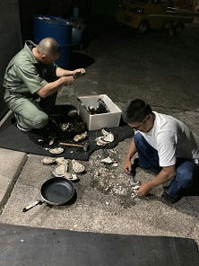 残しても仕方ないので、若い子たち必死に貝解体(笑)
