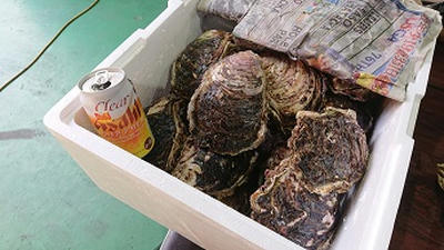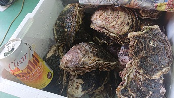 岩ガキ旨すぎて頭にのせるぐらいルンルン!