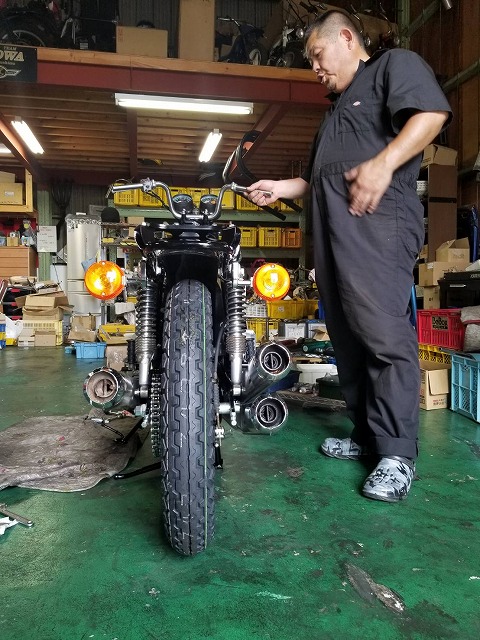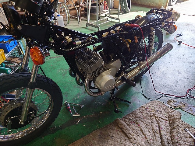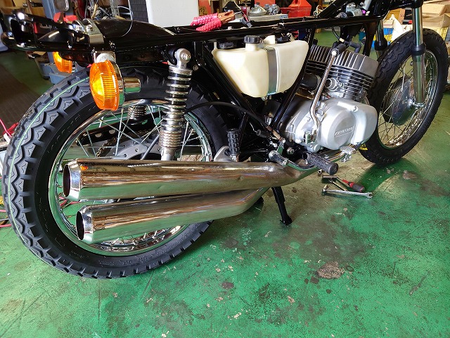 SS350のマフラーも磨き装着!