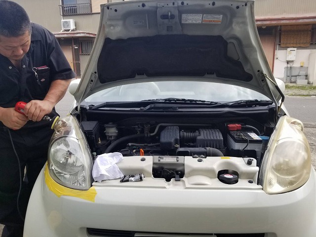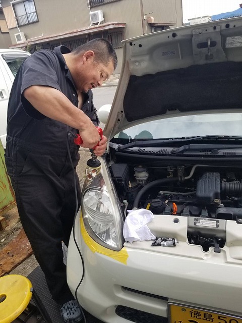 義理の母親のライトも磨いておきます。